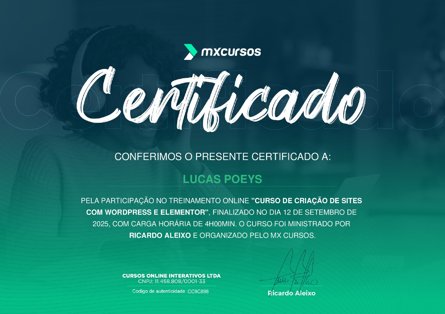 Atualmente, tenho mais de 1 ano de experiência criando sites profissionais em WordPress e já entreguei 15 projetos para clientes. Trabalho para desenvolver soluções eficientes, modernas e fáceis de gerenciar.